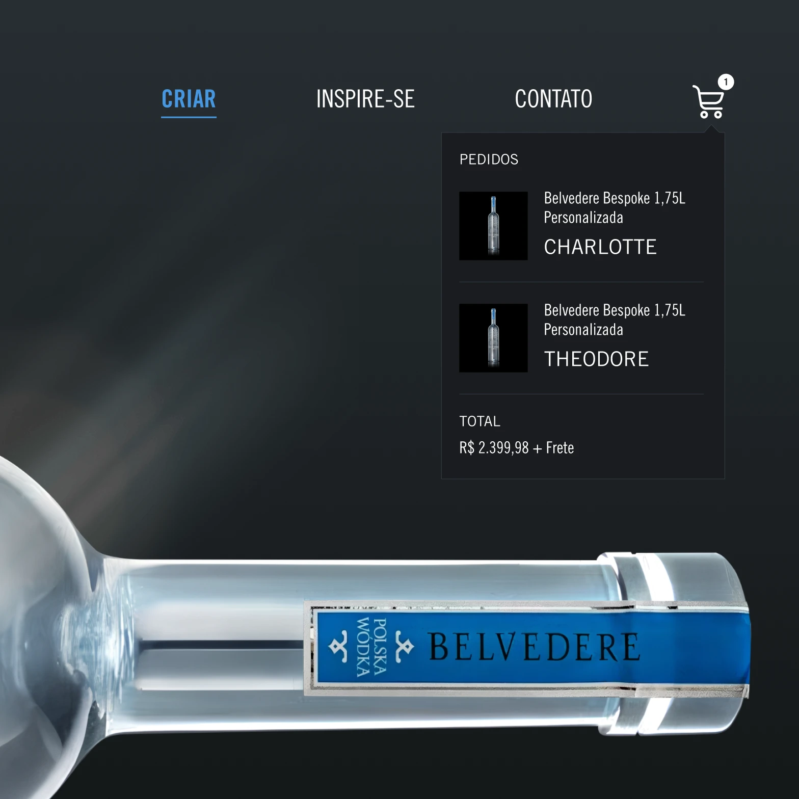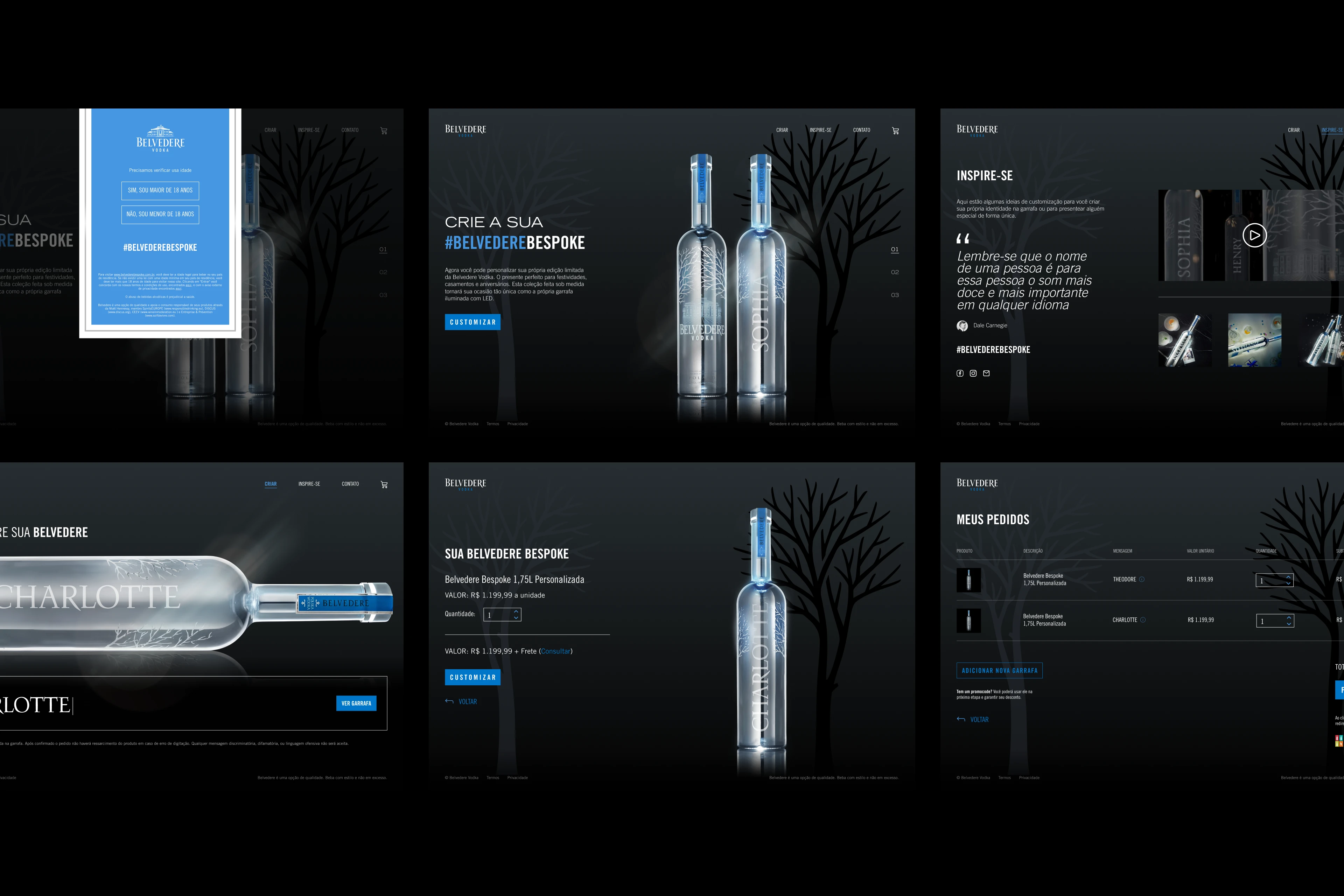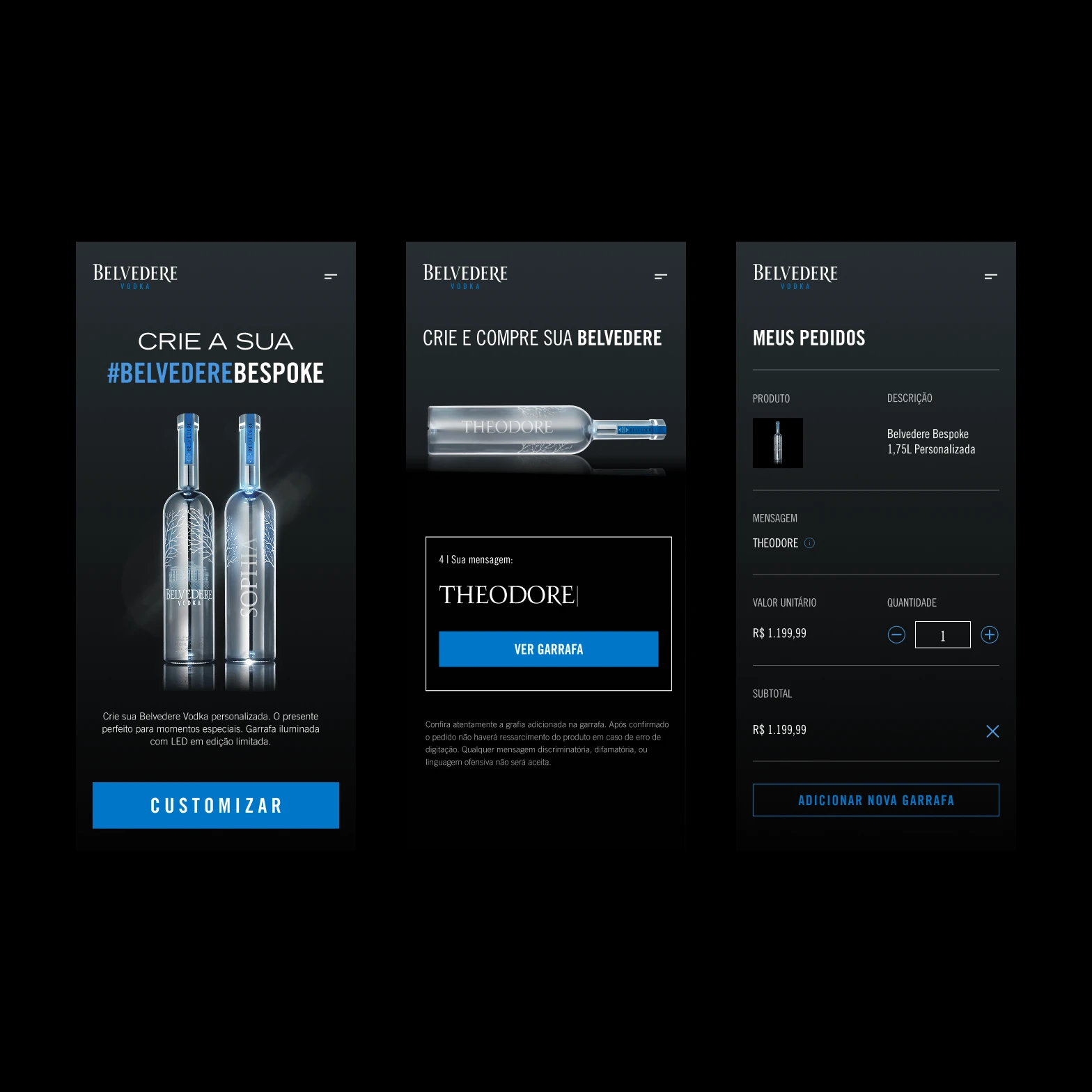 Belvedere Bespoke is an exclusive edition of Belvedere vodka, presented in a 1.75L metallic silver magnum bottle (Silver Sabre) with built-in LED lighting. The bottle can be laser-engraved with messages, names, or dates, making it ideal for gifting and celebrations. I designed the website and the message customization logic. The mobile-first platform connects directly to partner retail systems, delivering orders ready for checkout.