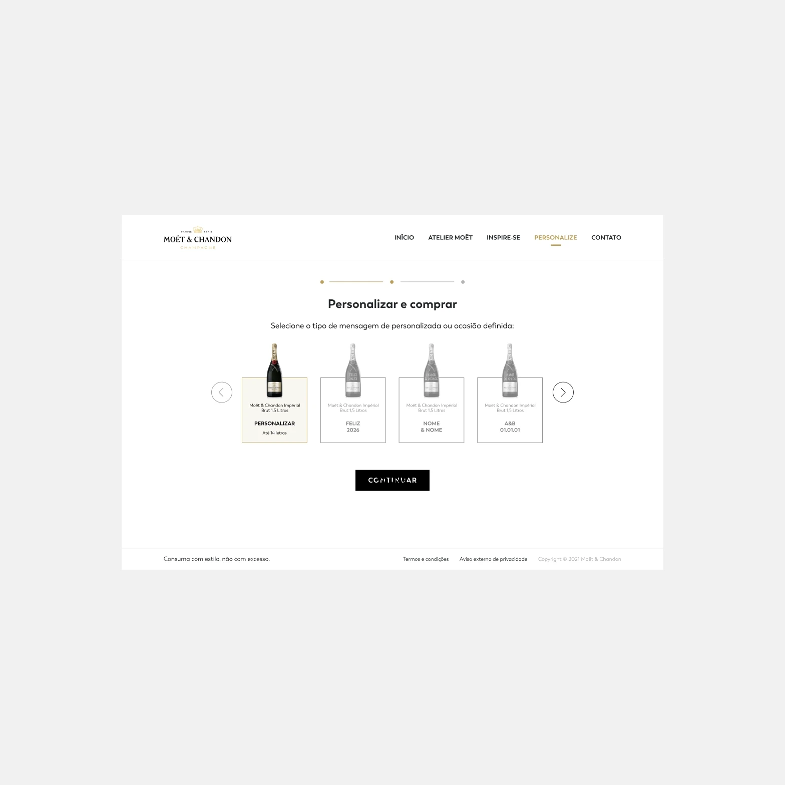 I developed Moët Crystal Font, a custom typeface family in Normal and Bold weights that visually simulates Swarovski crystal application. Each glyph was designed around the physical spacing limitations of manual application, with extensive kerning and legibility studies determining optimal spacing for 7 to 12 characters. Usability testing validated the journey across multiple personalization categories, always in strict alignment with LVMH guidelines. The system offers real-time preview as customers type, automatically validating 8 personalization types including couple initials, dates, names, and free messages. A proprietary CMS lets the marketing team update content autonomously.