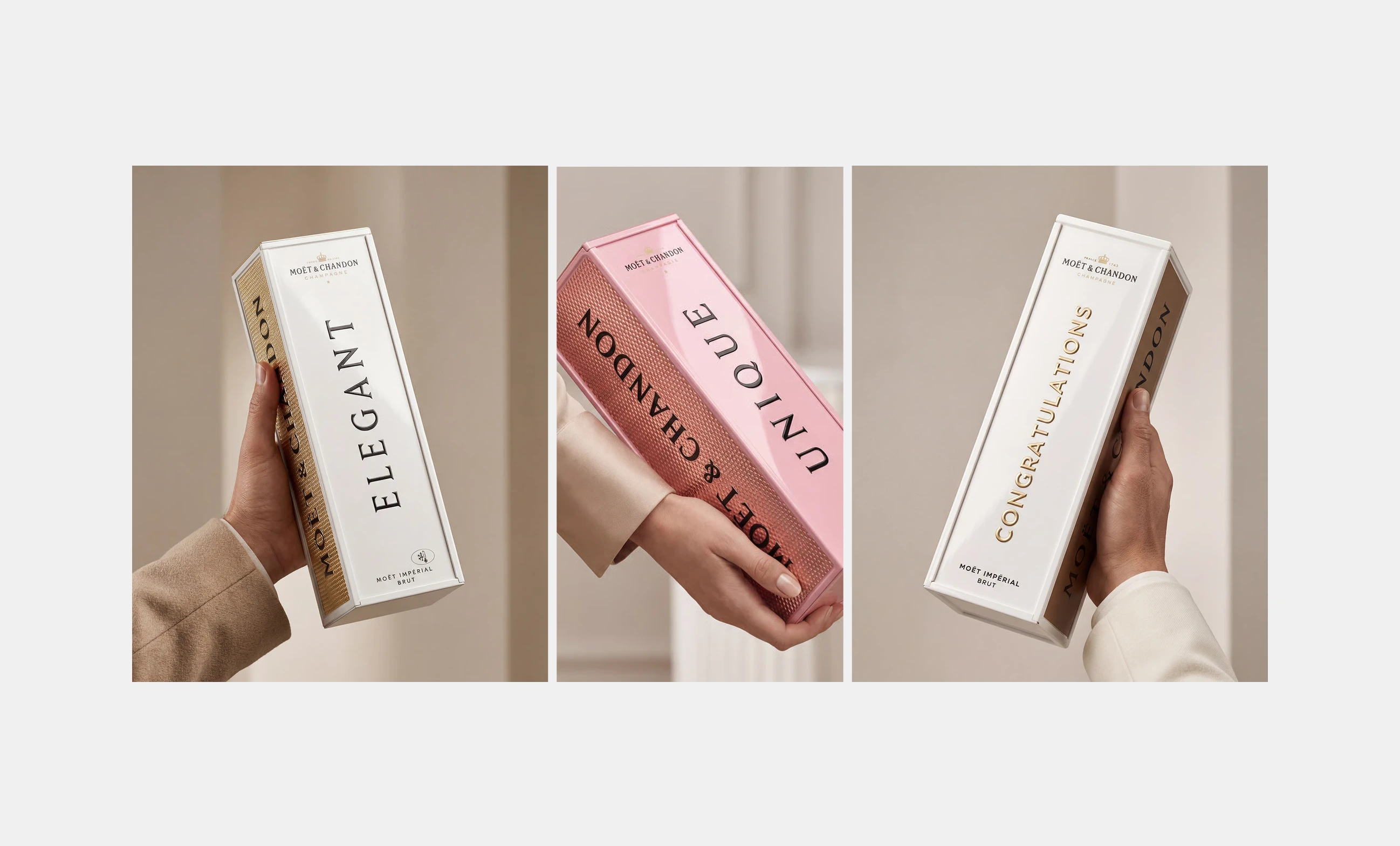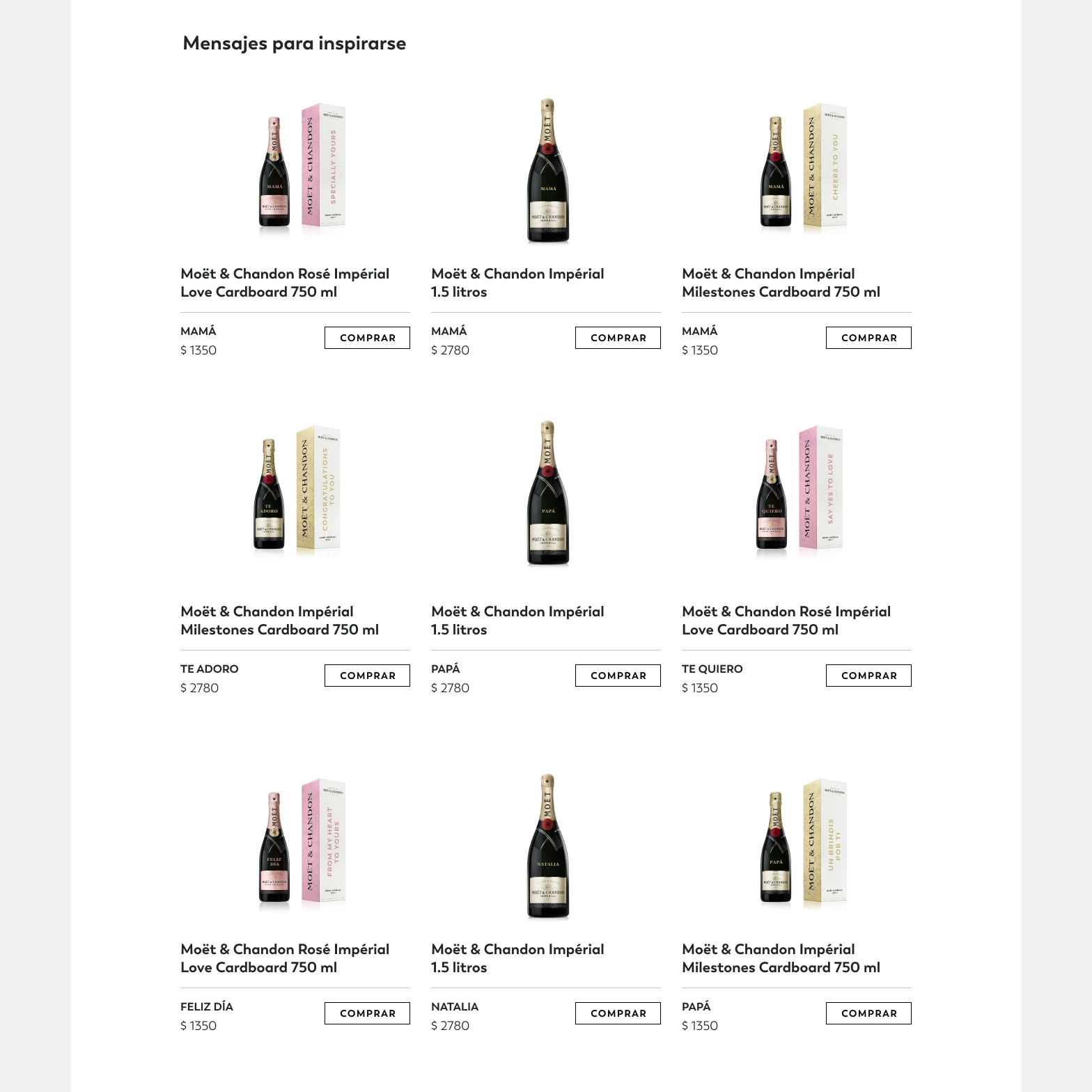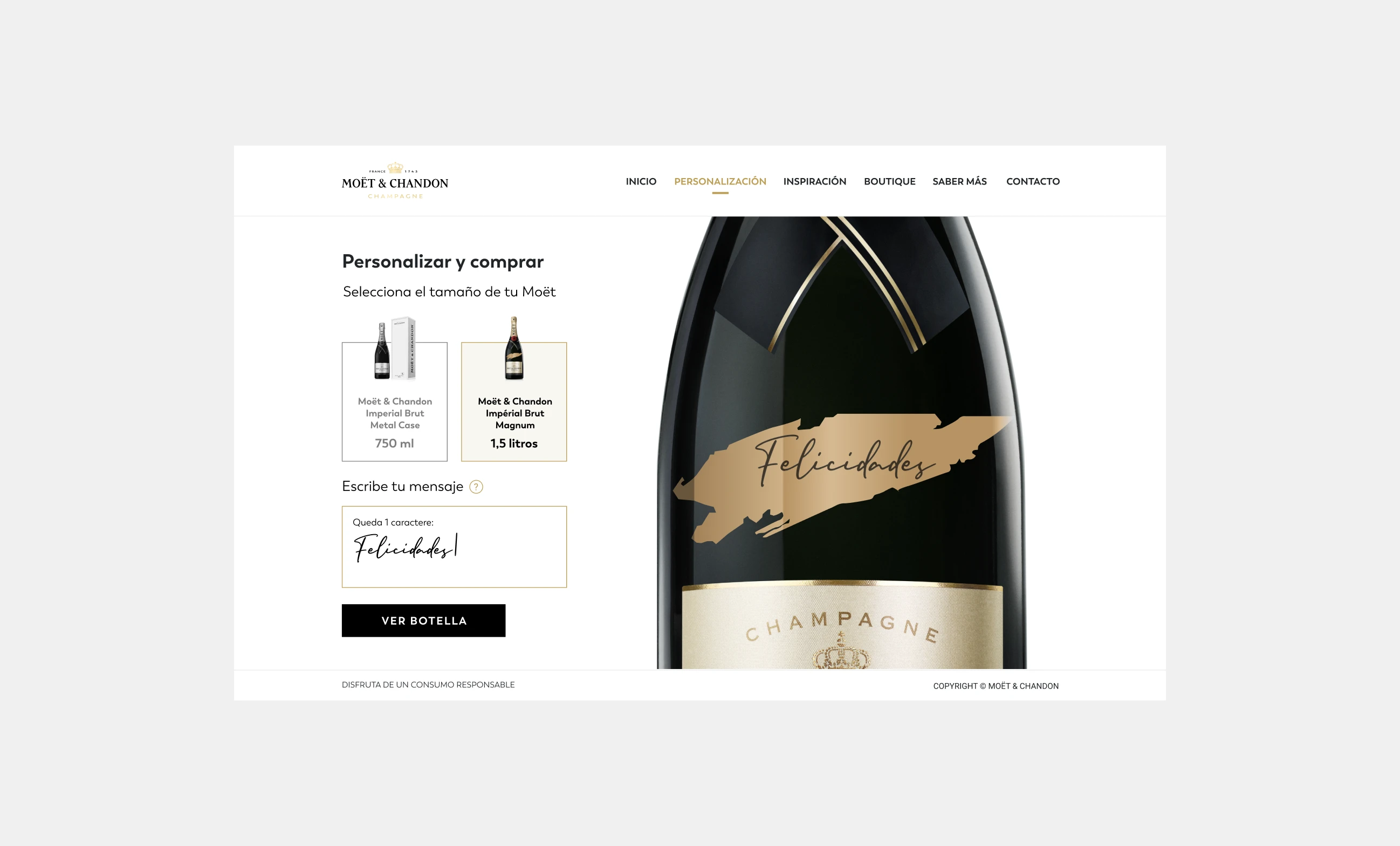 Moët Gift Shop is the online version of Moët & Chandon's official boutique and pop-up store experience, designed as a temporary luxury destination focused on gift personalization and exclusive labels. I was invited to design the platform for Brazil and Mexico, creating the experience for bottle and case personalization with custom typography and stickers, directing customers to partner e-commerce platforms in both countries.