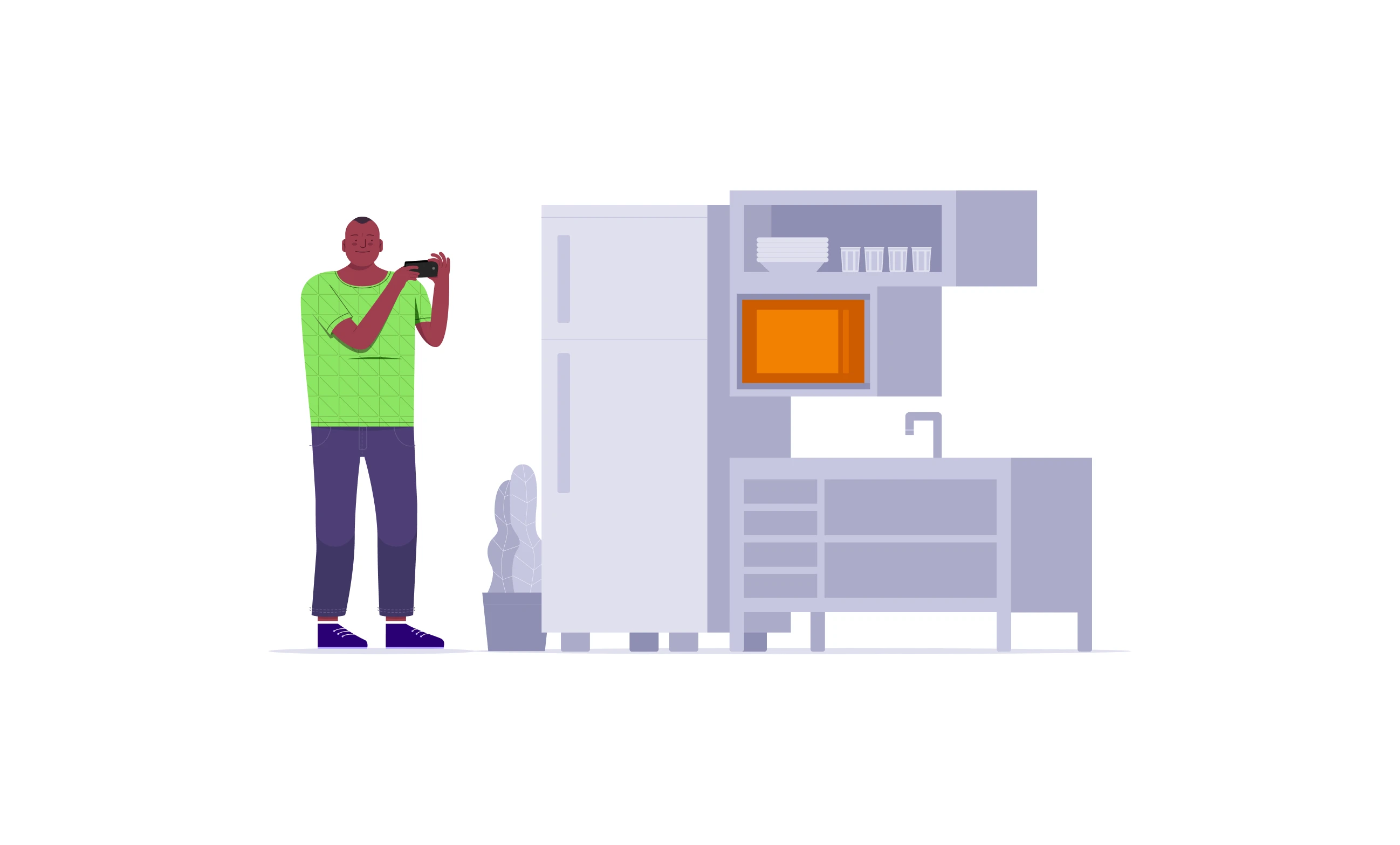 OLX was going through a visual repositioning process, and illustration was a key layer of this transformation. The existing UI Kit had no consistent pattern or coherence in illustration choices, relying on stock images that failed to establish a recognizable identity. I was commissioned to develop a series of illustrations including 3 characters and 3 distinct scenarios corresponding to OLX usage contexts. The target audience spanned men and women aged 18-49 across Brazil, with interests in gastronomy, technology, fashion, sports, and travel.